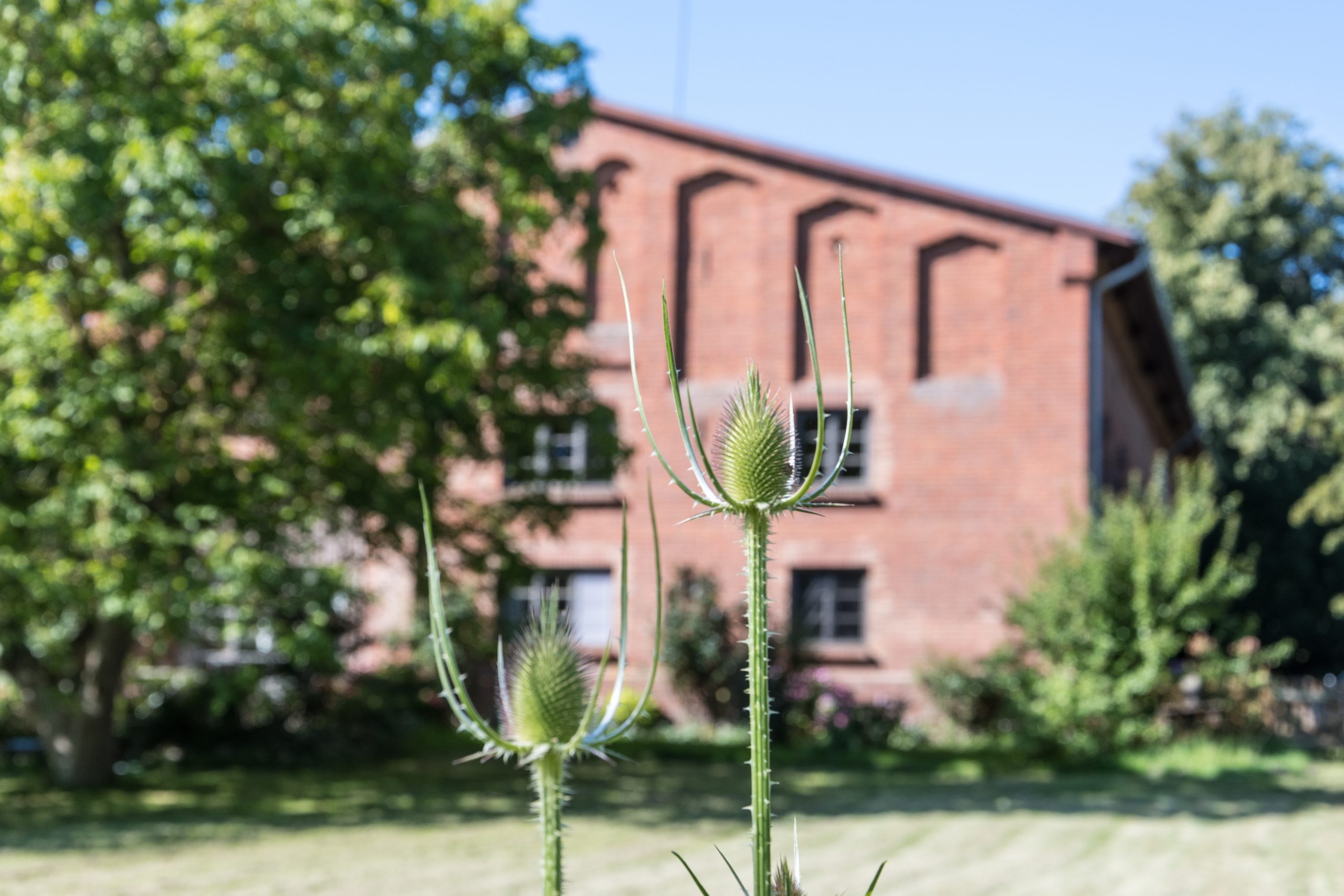 Entlang der Kastanienallee befinden sich sog. Schnitterkasernen, die den Landarbeitern und Tagelöhnern Wohnraum boten. Vier Doppelkatens sind noch vorhanden, dazwischen sind drei Neubauten entstanden.